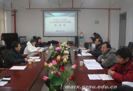 公司2012年度国家社会科学基金项目申报选题论证会于1月11日上午在公司大会议室举行,蓝琪教授、唐昆雄教授、杨斌教授受邀组成专家组,社科处谢廷秋处长亲临指导。公司申报2012年国家社科基金项目的主持人及部分青年教师共近三十人参加。