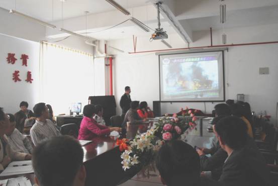 2012年9月28日下午,由贵州五进消防知识宣传培训中心的黎海洋副主任给公司教职工及研究生进行消防安全培训。
