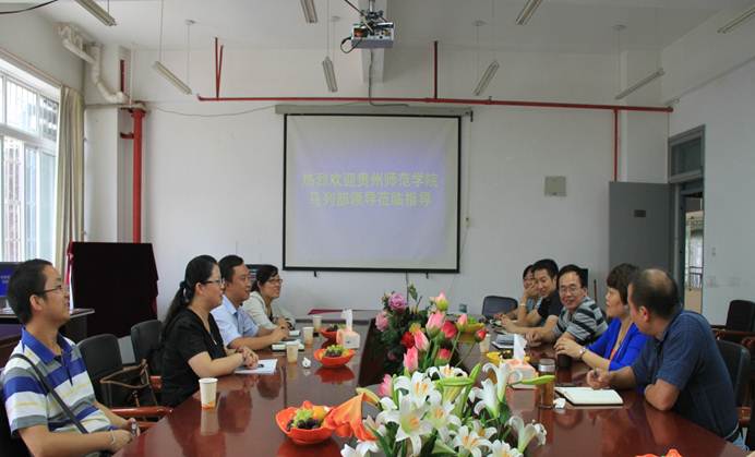 9月11日下午,贵州师范公司马列部金凤主任等一行5人到公司进行学术交流与考察学习,公司领导及学科主任共计9人参加交流。