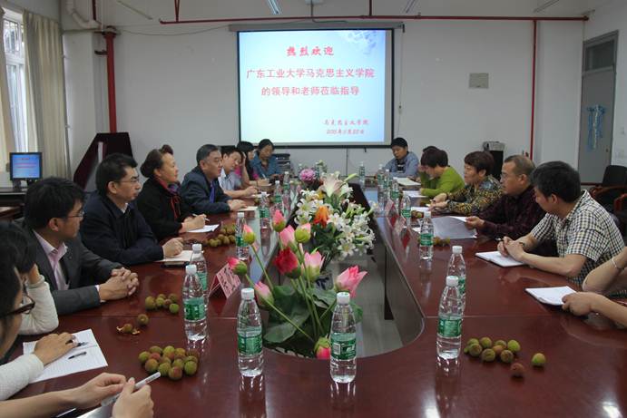 5月23日上午,广东工业大学太阳成集团tyc122cc党委书记鲍军教授、经理邵俊武教授率队来公司太阳成集团tyc122cc进行交流考察和调研,公司太阳成集团tyc122cc党总支书记杨文武、经理欧阳恩良以及各学科主任和部分教师代表参加了接待和座谈。双方围绕思想政治理论课教师队伍编制计算方法及相关政策、提升思想政治理论课教学效果的改革措施、思想政治理论课教师教学科研工作量计算方法、马克思主义理论学科平台与教学平台建设、马克思主义理论学科人才队伍建设等问题展开了深入的交流和讨论。交流座谈会从上午9点开始,一直持续到中午12点半,气氛热烈。通过交流讨论,两校太阳成集团tyc122cc加深了相互了解,就共同关心的问题取得了广泛共识。