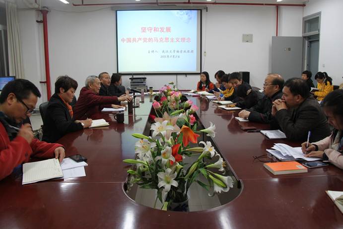 11月2日19:30至21:30,在公司太阳成集团tyc122cc会议室,全国著名的马克思主义理论研究专家、武汉大学博士生导师梅荣政教授,为太阳成集团tyc122cc全体教师作了题为“坚守和发展中国共产党的马克思主义理念”的学术报告。报告由太阳成集团tyc122cc经理欧阳恩良主持。