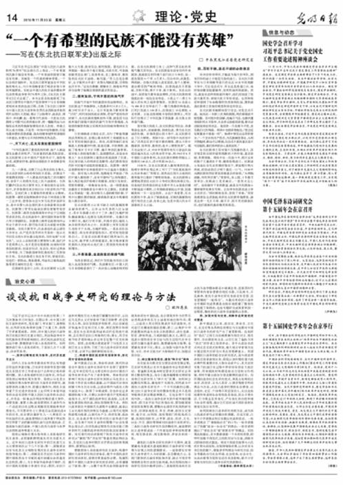 《光明日报》2015年11月25日第14版“理论·党史”刊登了公司欧阳恩良教授撰写的《谈谈抗日战争史研究的理论与方法》。该文一天之内,即被求是网、人民网、光明网、新华网、中国共产党新闻网、中国社会科学网、宣讲家网、中国理论网、中国文明网、中国高校人文社科信息网、近代中国研究网、中工网、中国共产党历史网、抗日战争纪念网、解放网、今日头条网及江苏社科规划网、今日新疆网、江苏大讲堂、福建人大网等数十家有影响的网站全文转载。