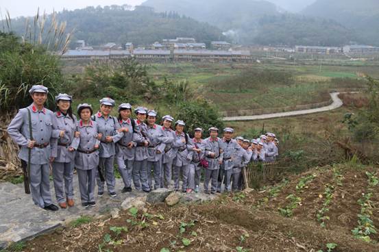 11月5日下午,老师们在参观完苟坝会议会址后,穿着红军服装,排着队唱着红歌走了四里多的“毛泽东小道”,体验当年毛泽东提着马灯,走过泥泞的小道,再一次挽救了红军的伟大历史。