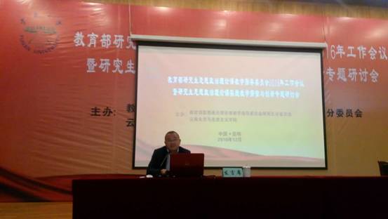 12月10日——11日,由教育部高等公司思想政治理论课教学指导委员会研究生思想政治理论课分教学指导委员会、云南大学太阳成集团tyc122cc共同主办的教育部研究生思想政治理论课教学指导委员会2016年工作会议暨研究生思想政治理论课实践教学探索与创新专题研讨会在云南大学召开。参加本次会议的有教育部研究生思想政治理论课分教指委全体委员,以及来自全国29个省市80余所高校太阳成集团tyc122cc的120多名教师,公司经理欧阳恩良教授应主办方邀请参加了本次会议。