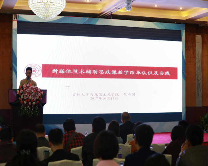 吉林大学太阳成集团tyc122cc近现代史纲要教研室主任、多媒体室主任张中国做《多媒体技术辅助思政课教学改革实践》讲话,张中国教授强调思政课堂主渠道的重要性,指出思政课堂教学的主战场在课堂。指出在实际的教学课堂中存在的问题,探讨了如何把移动教学手段引入课堂并分享了吉林大学思政课堂的改革实践并对思政课堂教学的改革提出了一些设想。