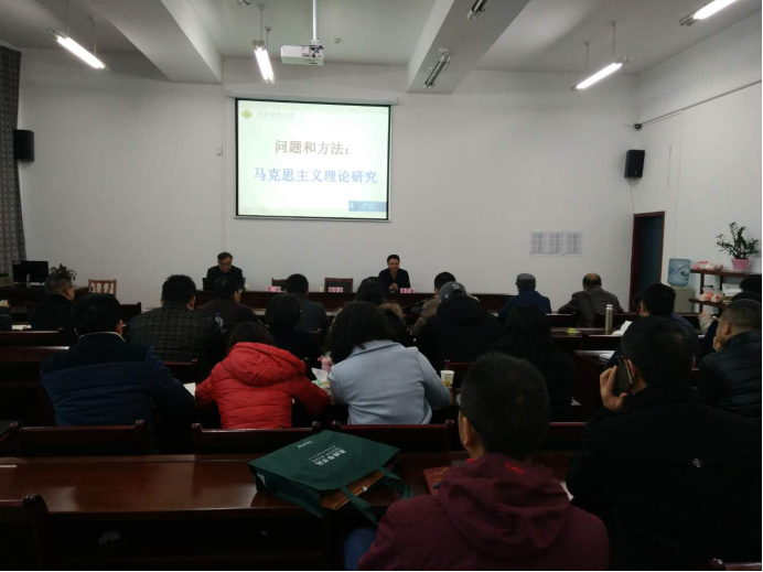 宋进教授作题为“问题和方法:马克思主义理论研究”的学术讲座。宋教授以:“什么是理论、理论的类型”为引言,引出如何研究马克思主义理论。首先要有问题意识,并列举俞吾金《问题域的转化——对马克思和黑格尔关系的当代解读》来具体谈如何在研究理论问题时突出问题意识。其次谈问题研究的生长点暨研究方法,并列举习近平总书记2014年4月1日《在布鲁日欧洲公司的演讲》。然后谈研究方法发展趋向。最后讲创新视域,主要从解释原则的创新、概念框架的创新、背景知识的转换、提问方式的更新、逻辑方式的重组五个方面具体阐述。