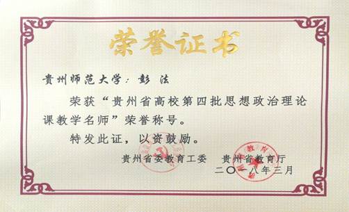 祝贺彭法老师荣获“贵州省高校第四批思想政治理论课教学名师”荣誉称号