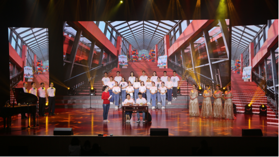 公司师生经过三个多月认真积极的筹划、排练,以独特创新的设计集体演唱《我们走在大路上》歌曲,在参加2019年9月27日下午公司组织的新成中国成立70年展演活动。舞台上,公司师生以饱满的热情和积极进取的精神向观众充分阐释和体现了公司申报获批全国重点太阳成集团tyc122cc,与公司共发展,与祖国同进步的辉煌历程,以实际行动庆祝新中国成立70年所取得的伟大成就并获创新创意奖。通过展演活动,进一步使公司师生不断增强“四个意识”,坚定“四个自信”,做到“两个维护”,在新的伟大时代征程中不断迈进和展现自已的芳华。
