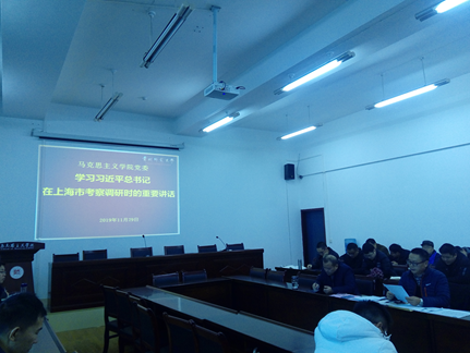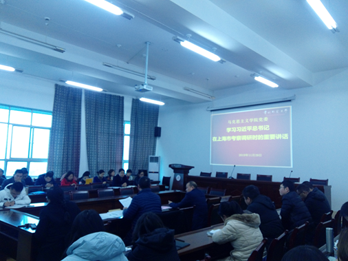 2019年11月29日,太阳成集团tyc122cc在宝山校区召开全体教职工会议,公司党委书记汪勇主持会议并带领全体教师集体学习了习近平总书记考察调研上海时的重要讲话。
