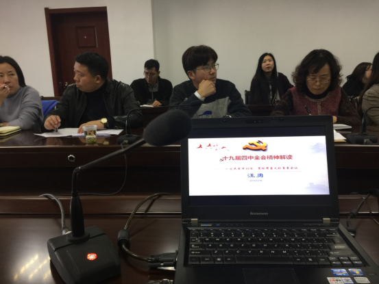 汪勇教授从十九届四中全会的会议召开情况、会议通过的《中共中央关于坚持和完善中国特色社会主义制度、推进国家治理体系和治理能力现代化若干重大问题的决定》的13条显著优势及13个需要坚持和完善的制度体系等主要内容及其六大创新等内容作了深入浅出的阐述,使与会人员对十九届四中全会精神其通过的“决定”的主要内容等有了一个较为全面的理解和认识,对学习和贯彻十九届四中全会精神起到了积极的推动作用。