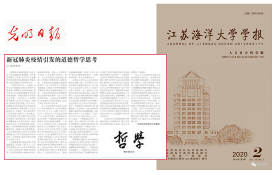 一是,从新冠肺炎疫情的暴发,反思人与自然的辩证关系。欧阳辉纯教授在《光明日报》发表文章《新冠肺炎疫情引发的道德哲学思考》,文章认为:人类是自然生物链上最高级的物种。但人类不能为了自我欲望的满足,不遵守大自然生物链的平衡原则,肆无忌惮地去破坏大自然。人类应该利用自己的智慧和能力去保护自然界的一切,与大自然和谐共处。这是自然的道德要求,是环境正义的原则要求,也是人类应尽的责任和义务;高晓波教授在《江苏海洋大学学报(社会科学版)》发表文章《人与动物和谐共生的哲学维度》文章认为:新冠肺炎的暴发与野生动物密切相关,从马克思和恩格斯的人与自然关系理论角度来看,进一步将动物分解为野生动物和家畜两种类型,揭示人与动物的本质关系,即人与野生动物和人与家畜的关系,告诉人类应充分尊重野生动物生存规律,消除人与动物之间的对立关系。