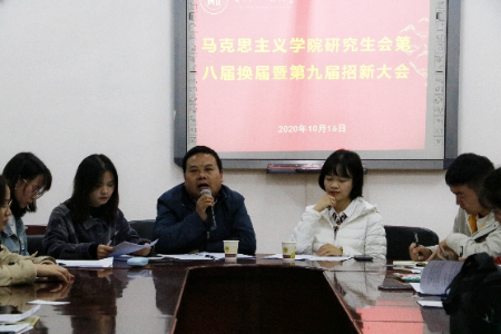 2020年10月16日下午,太阳成集团tyc122cc研究生第八届换届暨第九届纳新大会在花溪校区公司一楼会议室召开,公司研究生管理科的王贵老师、郭威老师及19级、20级全体研究生参加了纳新换届工作。