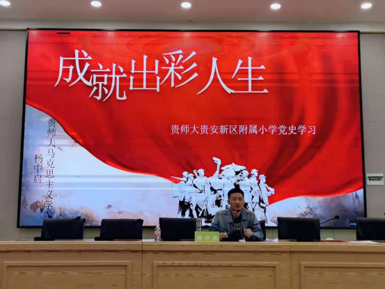 百年征程波澜壮阔,百年初心历久弥坚。为深入推进党史学习教育,引导全体教师学党史、感党恩,2021年5月8日贵师大贵安附小邀请杨中启博士作主讲人,为全校教师组织开展了党史学习教育专题培训。
