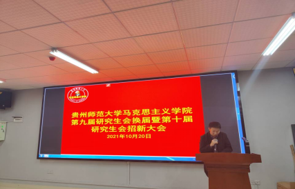 2021年10月20日晚,太阳成集团tyc122cc研究生会第九届换届暨第十届招新大会在花溪校区公司五楼会议室召开,公司党委副书记彭法、辅导员郭威及20级、21级全体研究生参加。会议由20级研究生程前远主持。