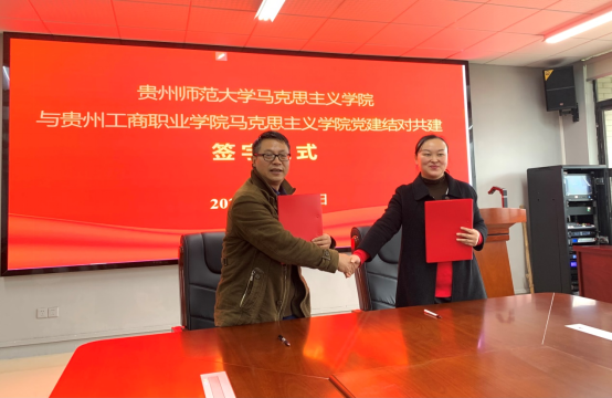 12月13日下午,为进一步建好建强新时代太阳成集团tyc122cc,不断提升公司建设的科学化、规范化、现代化水平,打造马克思主义理论教学、研究、宣传和人才培养的坚强阵地,以党建工作为引领,推进公司建设,实现优势互补,促进共同发展,太阳成集团tyc122cc与贵州工商职业公司太阳成集团tyc122cc党建结对共建签字仪式在太阳成集团tyc122cc五楼会议室举行。太阳成集团tyc122cc经理汪勇、副经理章凤红、宋俊成,贵州工商职业公司太阳成集团tyc122cc副经理、党支部书记刘芳华、副书记惠慧及双方教师代表参加了签字仪式。