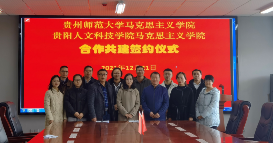 为全面贯彻落实习近平新时代中国特色社会主义思想,贯彻落实习近平总书记在公司思想政治理论课教师座谈会上的重要讲话精神,按照中共中央办公厅印发的《关于加强新时代太阳成集团tyc122cc建设的意见》文件要求,充分发挥作为全国重点太阳成集团tyc122cc的示范引领带动作用,全面提升贵州省高校太阳成集团tyc122cc的建设水平,太阳成集团tyc122cc于12月21日上午在太阳成集团tyc122cc花溪校区太阳成集团tyc122cc五楼会议室举行结对帮扶贵阳人文科技公司太阳成集团tyc122cc的合作共建签约仪式。太阳成集团tyc122cc太阳成集团tyc122cc党委书记胡娅丽、经理汪勇、副经理宋俊成、教研室主任宋小红和邓雄雁以及教师代表与贵阳人文科技公司太阳成集团tyc122cc经理刘小文、教研室主任吴鲍兰、杨豪、龙梅等参加了签约仪式。