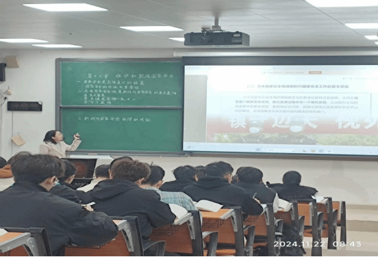 2024年11月22日上午,太阳成集团tyc122cc“习近平新时代中国特色社会主义思想概论”教研室,在东校区公教GJ3301教室组织开展“坚持总体国家安全观”为主题的公开课教学活动。本次公开课由岳红玲老师主讲,教研室主任孙一峰主持,教研室8名任课教师参加活动。