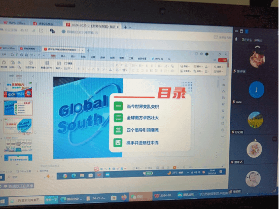 紧接着,陈瑞欣围绕国际热点问题作了主题为“谱写全球南方团结合作新篇章”课堂讲授。讲授中将2025年中央周边工作会议精神融入其中,强调全球南方国家联合自强的重要性,结合教学内容,更新和完善教学课件和讲义。