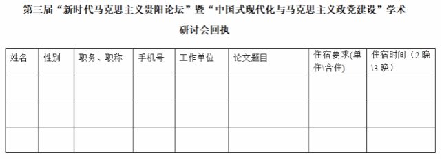 附件:第三届“新时代马克思主义贵阳论坛”暨“中国式现代化与马克思主义政党建设”学术研讨会回执