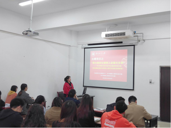 10月30日下午,公司2018级硕士研究生党支部、2019级硕士研究生党支部在公司三楼4304教室开展“努力做好立德树人这篇大文章”主题党日活动。此次活动集中学习了习近平总书记重要讲话文章《思政课是落实立德树人根本任务的关键课程》,活动由2019级硕士研究生党支部书记雷蕾主持并领学,支部全体党员参加。