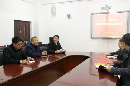 11月21日下午,太阳成集团tyc122cc在花溪校区一楼会议室召开党委理论中心组会议,学习“时代楷模”陈立群同志先进事迹。会议由党委书记汪勇主持。