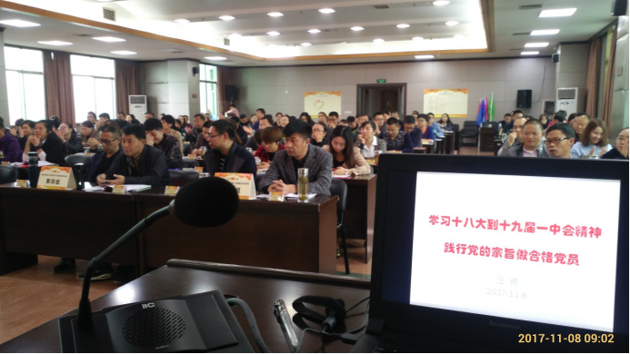 公司副经理汪勇教授受贵州省地税局培训中心邀请到凯里于11月8日上午和下午给来自全省的地税基层干部理论轮训班学员共150人作十九大报告和习总书记对贵州寄予厚望的两场宣讲报告。汪勇教授运用音乐、图表、数字、案例等多种形式且丰富详实的材料并结合宣讲对象的工作实际等分别就习近平总书记在中国共产党第十九次党的代表大会上所作的报告及其参加贵州代表团讨论并对贵州经济社会发展所赋予的厚望进行了介绍。在上午的报告中,汪勇教授就十九大报告的主要内容作了详细深入而浅出的宣讲,宣讲对象通过宣讲对十九大报告的主要内容有了更加深入细致的了解和掌握。下午,汪勇教授就习总书记对贵州的关心和重视及其参加在十九大期间参加贵州代表团的重要讲话及其对贵州寄予的厚望并结合贵州自身实际面对未来如何深入学习贯彻落实党的十九大会议精神等作了宣讲,使宣讲对象对习总书记对贵州的关爱深受鼓舞。在每场两个半小时的讲座中,宣讲对象听得既认真专注又深受启示并表示收获不少。
