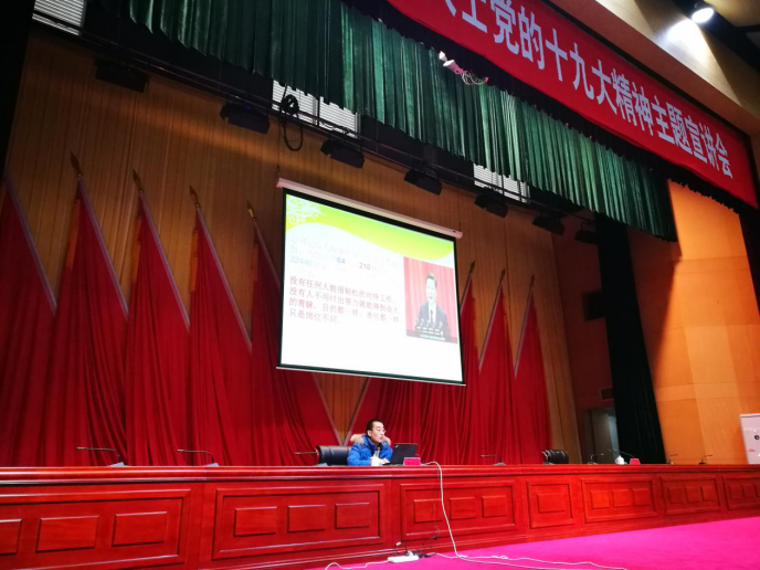 2017年11月25日,公司张荣军老师应遵义市工商联邀请,在遵义市委2好厅为遵义市非公经济人士200余人宣讲党的十九大精神,张荣军老师作了《新思想开启新时代 新体系开启新征程——深入学习党的十九大报告精神 》,他从十九大召开的历史背景、大会的盛况及成果、十九大报告的主要精神及亮点、党章修改的主要内容等四个方面进行的阐释。报告结束后,与会的领导和非公经济人士纷纷表示听了张老师的宣讲,对十九大报告出台的背景、主要内容、指导思想等有了更深刻的认识,受益良多。