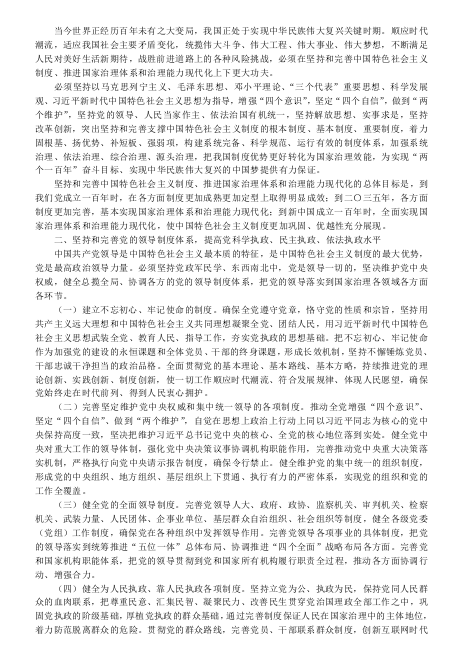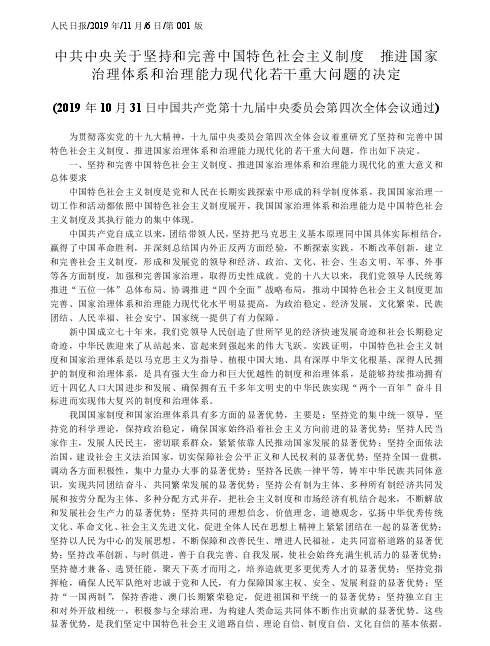 中共中央关于坚持和完善中国特色社会主义制度 推进国家治理体系和治理能力现代化若干重大问题的决定