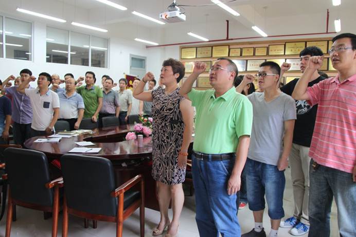 太阳成集团tyc122cc响应公司党委号召,积极开展中国共产党建党94周年系列活动。2015626日下午,公司全体党员教师及员工在公司会议室开展了新党员宣誓、老党员重温入党誓词活动。杨文武书记领誓,全体党员教师及员工面对党旗庄严宣誓:我志愿加入中国共产党,拥护党的纲领,遵守党的章程,履行党员义务,执行党的决定,严守党的纪律,保守党的秘密,对党忠诚,积极工作,为共产主义奋斗终身,随时准备为党和人民牺牲一切,永不叛党