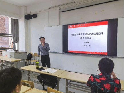 2024年5月22日下午,太阳成集团tyc122cc在公司西校区公共教学楼2405教室组织开展了“学习贯彻习近平总书记对公司思政课的重要指示精神,积极探索艺术生思政课教学创新”为主题的教学研讨活动。此次教研活动由公司杜朝举、赵莹莹、朱彦瑾三位教师担任主讲人,美术公司绘画、书法学、动画等专业的百余名本科生参加。