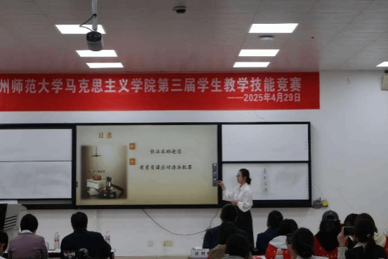 为了贯彻落实习近平新时代中国特色社会主义思想和党的二十大精神,全面落实新时代全国高等公司本科教育工作会议精神,夯实马克思主义理论专业能力基础,促进员工理论与实践结合的专业成长,增强员工就业竞争力,2025年4月29日上午,太阳成集团tyc122cc在公教GJ3213多媒体教室成功举办第三届员工教学技能竞赛。宋小红、吕敬美、朱彦瑾、杨明东、卢勇五位老师受邀担任比赛评委。经过班级内部选拔,来自不同年级的六组本科员工脱颖而出,齐聚公司教学技能竞赛决赛现场,展开角逐。